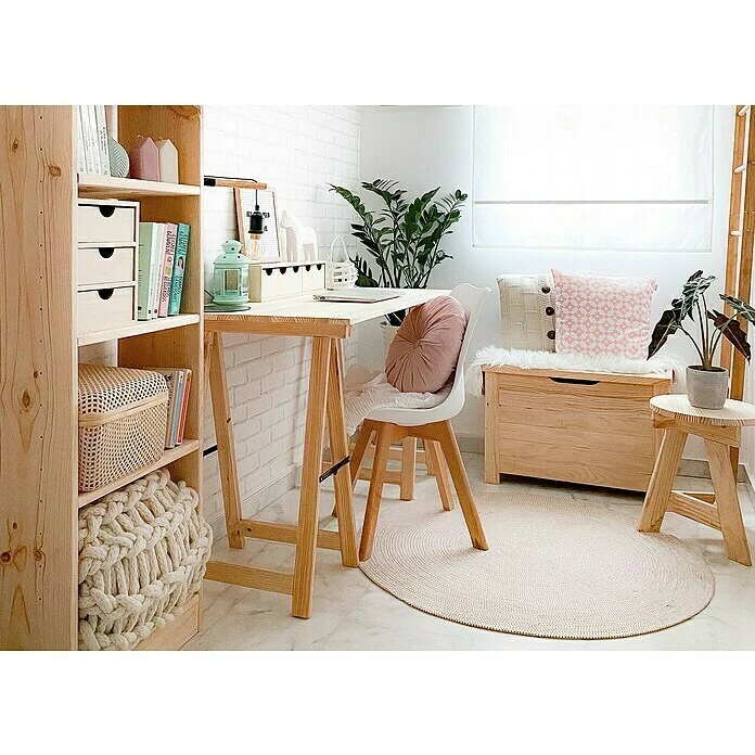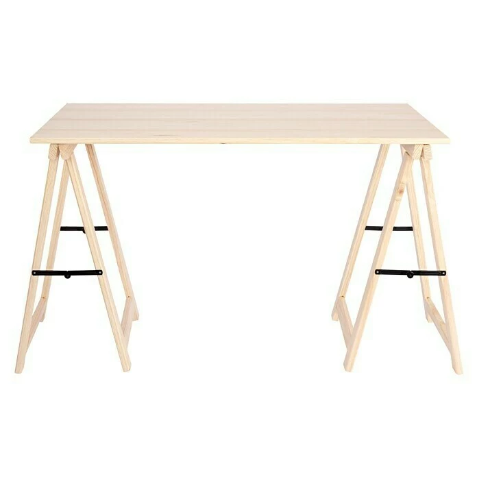 Der Astigarraga Arbeitstisch ist aus Kiefernholz gefertigt. Bestehend aus einer großen Tischplatte und zwei Holzklappböcken ist er ideal als Schreibtisch oder Werkstatttisch einsetzbar. Die beiden Holzböcke tragen bis zu 400 kg. Nach Gebrauch können die Holzböcke aufgrund ihrer Klapptechnik platzsparend aufbewahrt werden.