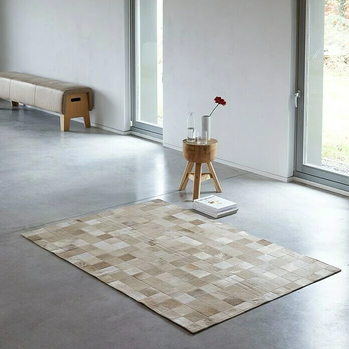 Das Esbeco Deko-Kuhfell Patchwork wertet mit seiner besonders individuellen Optik die Inneneinrichtung sichtbar auf. Das Patchwork-Design des Kuhfellteppichs stellt ein ausdrucksstarkes und authentisches Dekoelement für den Fußboden dar und sorgt für eine wohnliche Behaglichkeit. Kleine Flecken können mit einem feuchten Tuch entfernt werden. Auch eine Fußbodenheizung stellt bei der Platzierung kein Problem dar. Jedes Fell ist ein Unikat, leichte Abweichungen in Form und Farbe sind möglich. Ob im Wohnzimmer, als Accessoire im Schlafzimmer, im Esszimmer oder Flur – dieser hochwertige Teppich ist in jedem Wohnbereich ein echter Hingucker.