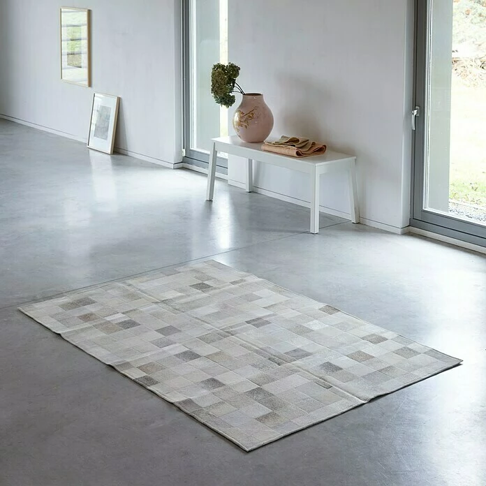 Das Esbeco Deko-Kuhfell Patchwork wertet mit seiner besonders individuellen Optik die Inneneinrichtung sichtbar auf. Das Patchwork-Design des Kuhfellteppichs stellt ein ausdrucksstarkes und authentisches Dekoelement für den Fußboden dar und sorgt für eine wohnliche Behaglichkeit. Kleine Flecken können mit einem feuchten Tuch entfernt werden. Auch eine Fußbodenheizung stellt bei der Platzierung kein Problem dar. Jedes Fell ist ein Unikat, leichte Abweichungen in Form und Farbe sind möglich. Ob im Wohnzimmer, als Accessoire im Schlafzimmer, im Esszimmer oder Flur – dieser hochwertige Teppich ist in jedem Wohnbereich ein echter Hingucker.