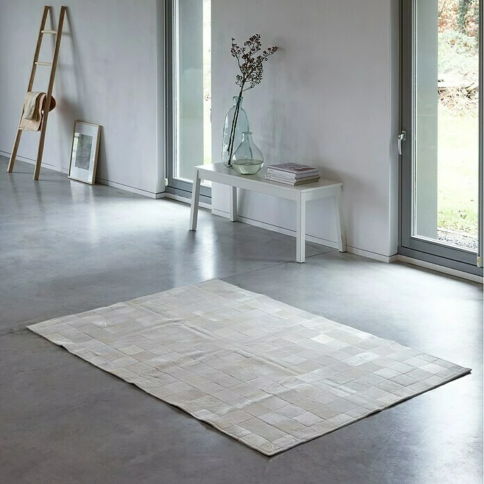 Das Esbeco Deko-Kuhfell Patchwork wertet mit seiner besonders individuellen Optik die Inneneinrichtung sichtbar auf. Das Patchwork-Design des Kuhfellteppichs stellt ein ausdrucksstarkes und authentisches Dekoelement für den Fußboden dar und sorgt für eine wohnliche Behaglichkeit. Kleine Flecken können mit einem feuchten Tuch entfernt werden. Auch eine Fußbodenheizung stellt bei der Platzierung kein Problem dar. Jedes Fell ist ein Unikat, leichte Abweichungen in Form und Farbe sind möglich. Ob im Wohnzimmer, als Accessoire im Schlafzimmer, im Esszimmer oder Flur – dieser hochwertige Teppich ist in jedem Wohnbereich ein echter Hingucker.