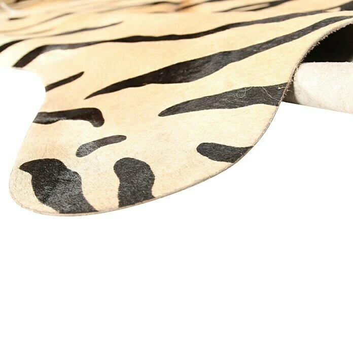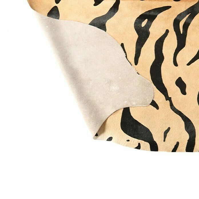 Das Esbeco Deko-Kuhfell wertet mit seinem Tiger-Look die Inneneinrichtung sichtbar auf. Mit einer Größe von ca. 3,5 m² ist das Kuhfell ein ausdrucksstarkes und authentisches Dekoelement für den Fußboden und bringt eine wohnliche Behaglichkeit mit sich. Das Leder ist dank seiner speziellen Behandlung besonders robust und verhindert den Ausfall der Fellhaare. Einer Reinigung mit dem Staubsauger steht somit nichts im Wege. Kleine Flecken können mit einem feuchten Tuch entfernt werden. Jedes Fell ist ein Unikat, leichte Abweichungen in Form und Farbe sind möglich.