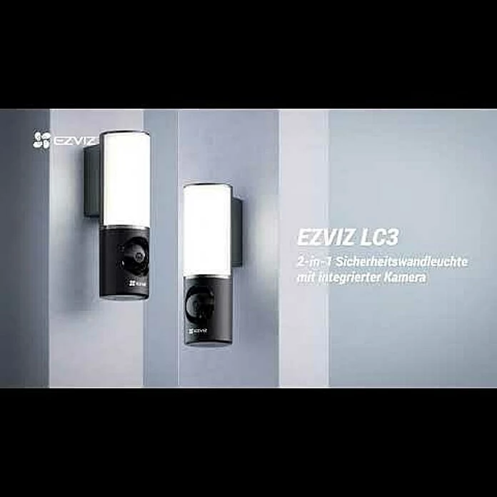 Das EZVIZ LC3 Smart Security Light vereint in eleganter Art und Weise intelligente und moderne Außen-Beleuchtung mit dezenter und hochauflösender Überwachung des eigenen Grundstücks. Die Außen-Wandlampe verfügt über eine regulier- und dimmbare Helligkeit von bis 700 Lumen. Die integrierte hochauflösende Kamera zeichnet mit 4 MP gestochen scharfe Bilder in 2K-Auflösung auf. Intelligente KI-gestützte Personenerkennung, Nachtsicht in Farbe und eine integrierte 100 dB Sirene sorgen für ein Maximum an Sicherheit. Dank des integrierten 32GB-Speichers lassen sich alle Aufnahmen ohne Folgekosten speichern und über die kostenlose EZVIZ-App einfach und von jedem Ort verwalten.