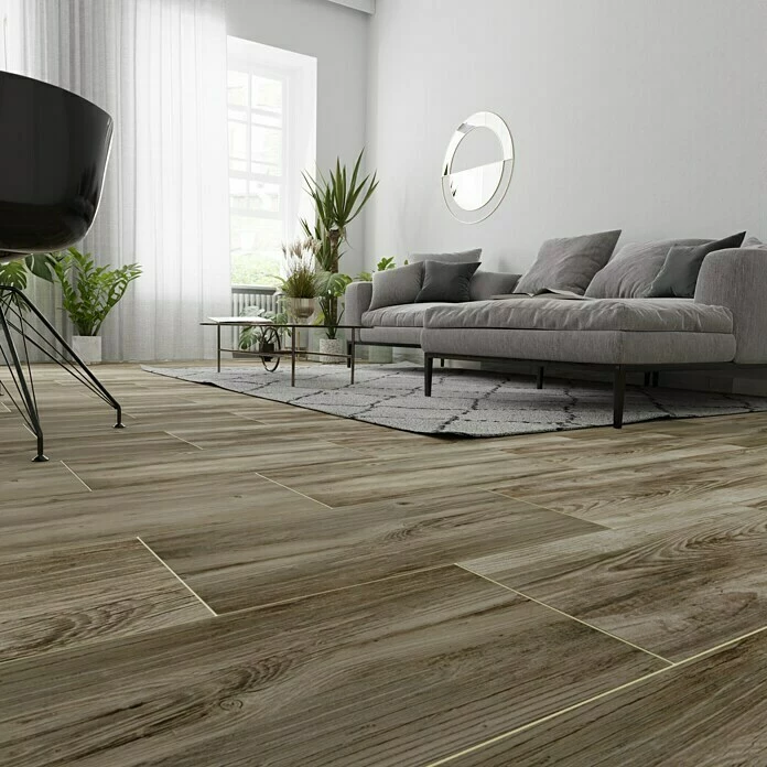 Die glasierte Feinsteinzeugfliese Betulla vereint in natürlicher Holzoptik die Eleganz und Einzigartigkeit wertvollster Edelholzarten. Durch das spezielle Herstellungsverfahren wiederholt sich das Muster nur selten und vermittelt somit eine elegante Atmosphäre. Die Fliese, welche eine glatte, glasierte Oberfläche besitzt, kann sowohl an der Wand als auch auf dem Boden verlegt werden. Des Weiteren eignet sich ihre Rutschsicherheit gut für den Außen- und Nassbereich. Wir empfehlen eine Verlegung versetzt im Drittelverband.