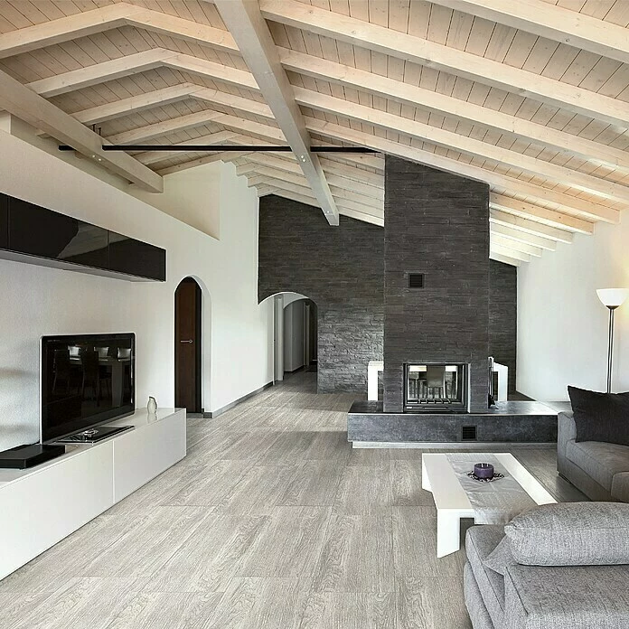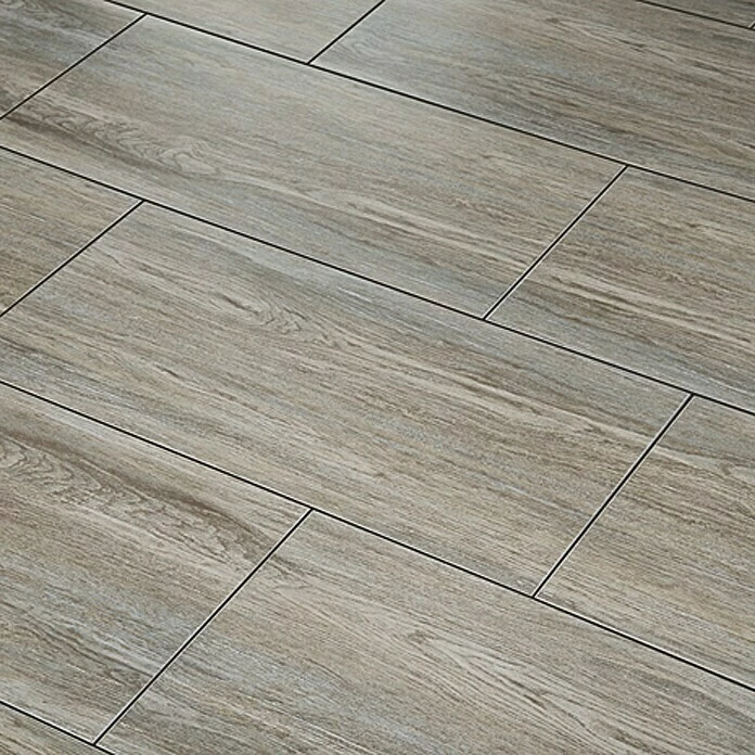 Die glasierte Feinsteinzeugfliese Saloon Silver bietet ein aus dem Laminatbereich bekanntes Pinienmuster mit mattem Finish und verbindet so die Wärme und ansprechende Optik des Holzes mit den Vorzügen der Fliese. Die Oberfläche wird bei hohen Temperaturen mit einer edlen Glasur veredelt und macht den Belag so pflegeleicht und widerstandsfähig gegen äußere Einflüsse. Eine Behandlung im Anschluss der Verlegung ist aufgrund der versiegelten Oberfläche nicht erforderlich. Aufgrund des speziellen Herstellungsverfahrens ist jede Fliese ein Unikat. Das Produkt ist besonders rutschsicher und somit gut für den Außen- und Nassbereich geeignet. Wir empfehlen eine Verlegung versetzt im 1/3-Verband.