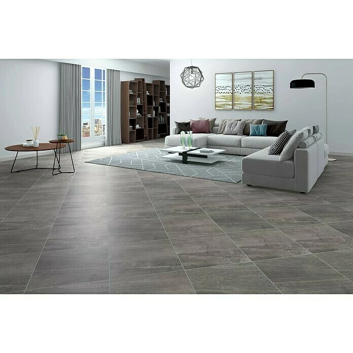 Die teilpolierte Feinsteinzeugfliese Texas Nero zeichnet sich durch hochmodernes Design, Eleganz und Langlebigkeit aus und stellt damit einen zeitlosen und gleichzeitig funktionalen Boden- und Wandbelag für Ihr Zuhause dar. Je nach Blickwinkel tanzt das Licht auf der Oberfläche oder verschwindet auf den matten Texturen. Wohnräume erhalten eine vom Lichtspiel inspirierte Eleganz, durch die im aufwendigen Verfahren der Lapato-Technik erzeugten Fliesen. Durch ihr samtiges und seidiges Erscheinungsbild verleiht Texas Nero jedem Raum das gewisse Etwas. Die rektifizierten Kanten ermöglichen eine besonders maßgenaue Verlegung mit schmalen Fugen.