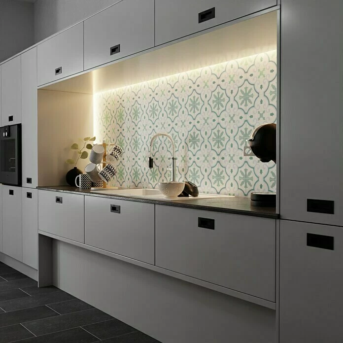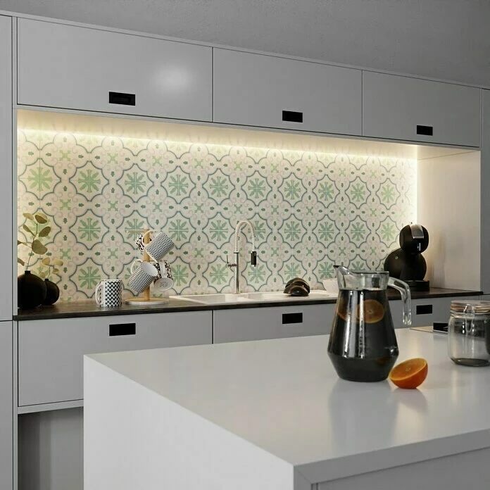Die Fliese im Vintage Look ist ein historisches Feinsteinzeug mit Jugendstil-Ornamenten und bietet für jeden Geschmack eine wunderbare Basis für die individuelle Raumgestaltung. Die Kombination zwischen dem modernen Effekt aus Zementoptik und dem zeitlosen Stil der alten Tradition der Mixdekoration, verleiht Ihrem Wohnzimmer, Ihrer Küche oder sogar Ihrer Terrasse eine einzigartige Atmosphäre.