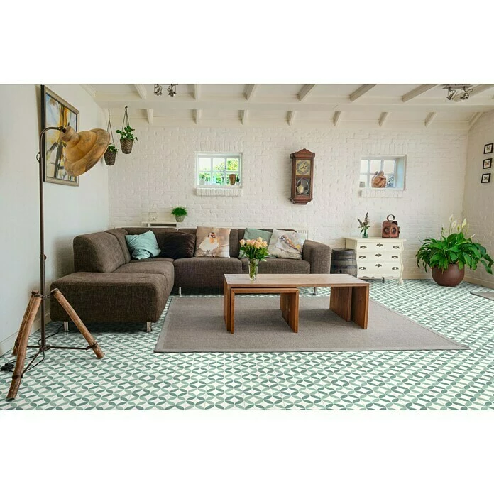 Die Fliese im Vintage Look ist ein historisches Feinsteinzeug mit Jugendstil-Ornamenten und bietet für jeden Geschmack eine wunderbare Basis für die individuelle Raumgestaltung. Die Kombination zwischen dem modernen Effekt aus Zementoptik und dem zeitlosen Stil der alten Tradition der Mixdekoration, verleiht Ihrem Wohnzimmer, Ihrer Küche oder sogar Ihrer Terrasse eine einzigartige Atmosphäre.