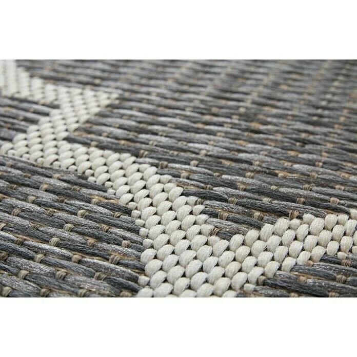Der Flachgewebeteppich Sunset ist in sehr strapazierfähiger Qualität gefertigt und ist sowohl für den Innen- als auch für den Außenbereich geeignet. Der Flachflorteppich in Flecht-Optik ist ein wahrer Trendsetter, er unterstreicht jedes moderne Flair und passt sich jeder Umgebung an. Der Teppich hat sehr vielseitige Einsatzmöglichkeiten. Im Innenbereich kann er beispielsweise im Wohnzimmer oder auch als Flurvorleger verwendet werden. Auf Grund der UV- und wasserbeständigen Eigenschaften ist er jedoch auch auf Balkon oder Terrasse im Außenbereich einsetzbar. Eingefasst ist der Teppich ringsum durch eine Kettelung, diese verhindert jegliches Ausfransen.