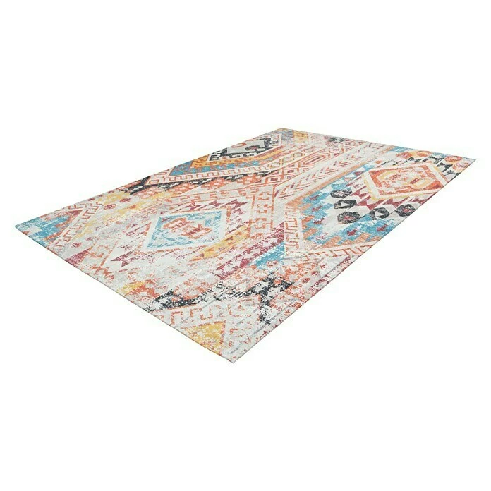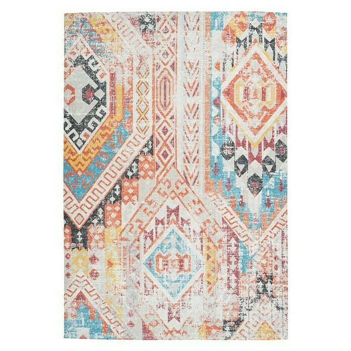 Der Kayoom Kurzflorteppich überzeugt mit Vintage-Charakter. Dieser Teppich mit flachem Flor wird durch das geprintete Design zum Blickfang in jedem Wohnbereich. Das Muster vereint einen attraktiven Ethno-Style mit für den Vintage-Stil typischen Verwaschungen und sorgt so für einen besonderen Look. Durch die Kombination mit attraktiven Wohnaccessoires wie Sitzpoufs oder Sofakissen im Vintage-Stil lässt sich das Einrichtungskonzept verstärken und einen ganz individuellen Style einbringen. Zu modernen, schlichten Möbeln, beispielsweise aus Holz, lässt sich das attraktive Design optimal kombinieren, denn dort kommt er besonders gut zur Geltung. Die Vielseitigkeit des Kurzflorteppichs macht ihn zu einem Allrounder, der in nahezu jedem Wohnstil seinen Platz finden kann. Die Pflegeleichtigkeit des flachen Flors ist ein weiterer Pluspunkt dieses Teppichmodells. Er kann auch in Räumen mit Fußbodenheizung eingesetzt werden. Verstärkt ist der Flor mit einem Rücken aus Canvas (100 % Baumwolle).