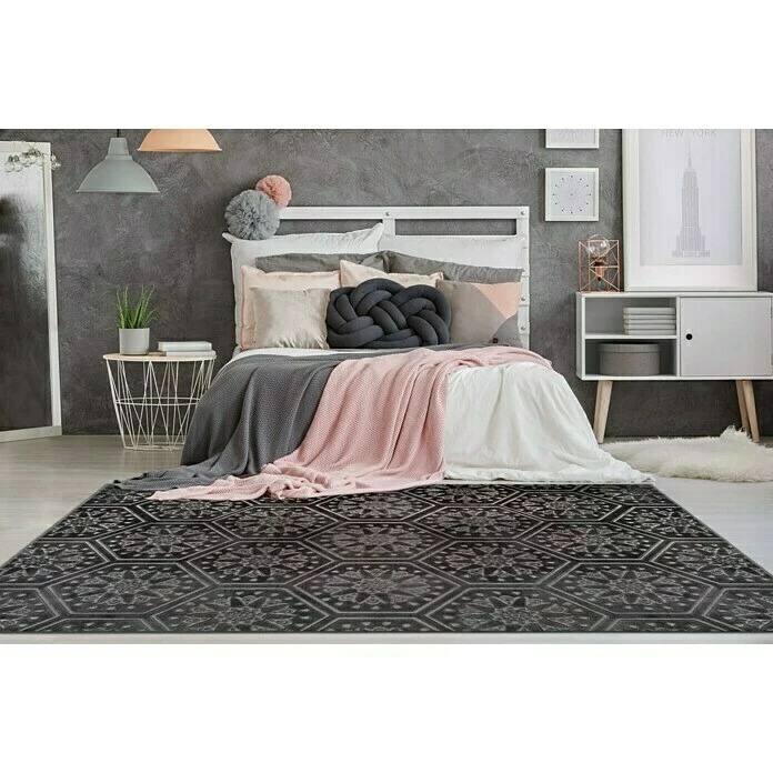 Der Kayoom Kurzflorteppich Monroe in mit einem geprägtem Muster designed. Dieses Teppichmodell ist ein ganz besonderes Schmuckstück und unterstreicht eine luxoriöse Innenraumgestaltung. Der einfarbige Kuschelflor ist mit einem Prägedruck versehen, der für eine zweifarbige Wirkung sorgt und gleichzeitig einen 3D-Effekt generiert. Durch die niedrigeren geprägten Fasern entstehen Höhen und Tiefen in der Oberfläche, die dem Teppich zu seiner besonderen Optik verhelfen. Rundherum ist der Teppich gekettelt, wodurch ein Ausfransen verhindert und gleichzeitig das Gesamtbild abrundet wird. Das stilvolle Design passt in nahezu jeden Einrichtungsstil und sorgt in den Wohnräumen für angenehme Wohlfühlatmosphäre. In der Haptik fühlt sich der Flor an wie echtes Kaninchenfell und ist somit besonders weich und komfortabel. Durch den Baumwollrücken mit Anti-Rutsch-Noppen wird unerwünschtes Verrutschen des Teppichs verhindert. So kann er optimal als Vorleger vor dem Bett im Schlafzimmer genutzt werden, um direkt beim Aufstehen das angenehme Gefühl unter den Füßen spüren zu können. Aber auch für gemütliche Stunden vor dem Kamin ist dieser Teppich optimal geeignet. In der passenden Kombination mit Heimtextilien und stimmiger Beleuchtung schafft dieser moderne Kurzflorteppich eine kuschelige und gemütliche Atmosphäre – nicht nur vor dem Kamin.