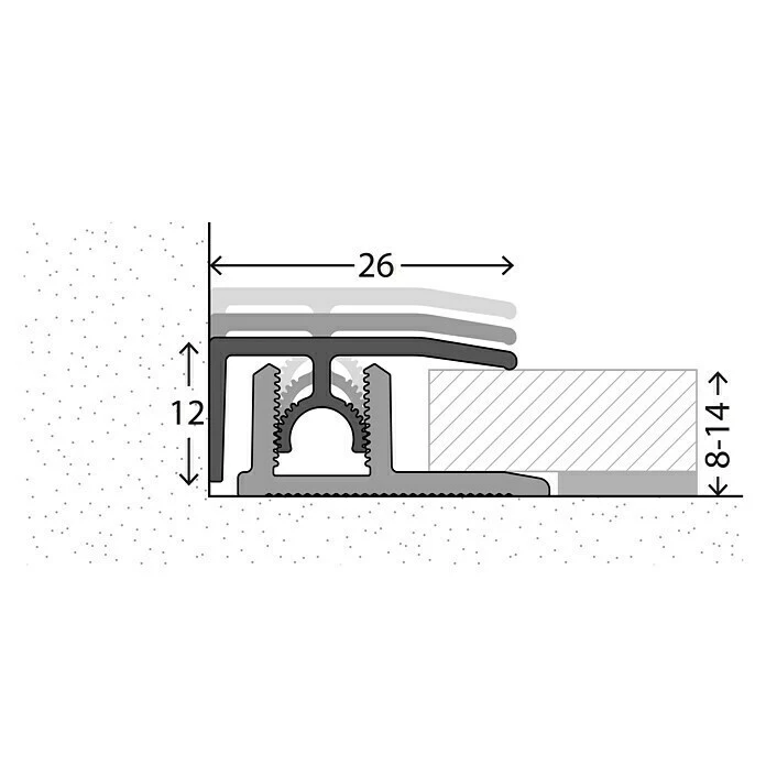 Das LOGOCLIC Abschlussprofil ist für Bodenbelagstärken von 8 – 14 mm konstruiert. Verdeckt befestigt bietet es eine perfekte Optik ohne Schraublöcher. Die flache Oberfläche ohne Zierrillen sorgt für zeitlose Eleganz. Die Montage ist besonders schnell und einfach. Zunächst wird das Basisprofil mit Montage- oder einem Zwei-Komponenten-Kleber auf dem Untergrund verklebt. Alternativ kann das Basisprofil auch verschraubt werden. Mit dem bogenverzahnten Gelenksteg rastet das Oberprofil im Basisprofil ein und passt sich automatisch dem Bodenbelag an – variabel in Höhe und Neigung. Auch bei stärkeren Niveauunterschieden liegt das Profil an beiden Seiten dicht an. Gleichzeitig erlaubt die Bogenverzahnung die problemlose Demontage. Das Oberprofil kann bei Bedarf gelöst und anschließend wieder im Basisprofil verankert werden. Die Profile wurden vom deutschen TÜV auf eine Punktbelastbarkeit von 1,5 Tonnen getestet. Hinweis: Passender Klebstoff oder Montagematerial ist separat zu erwerben.