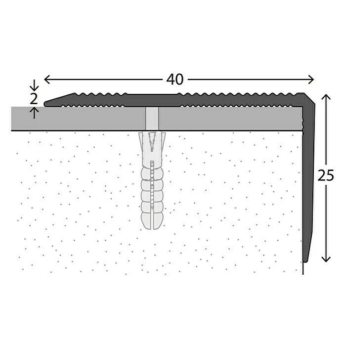 Das LOGOCLIC Treppenkantenprofil schützt zuverlässig die Kanten des Bodenbelags auf der Stufenkante. Versenkte Schraublöcher ermöglichen eine dauerhafte Befestigung des Winkelprofils. Die gerillte Oberfläche erhöht zusätzlich die Sicherheit auf der Trittfläche.