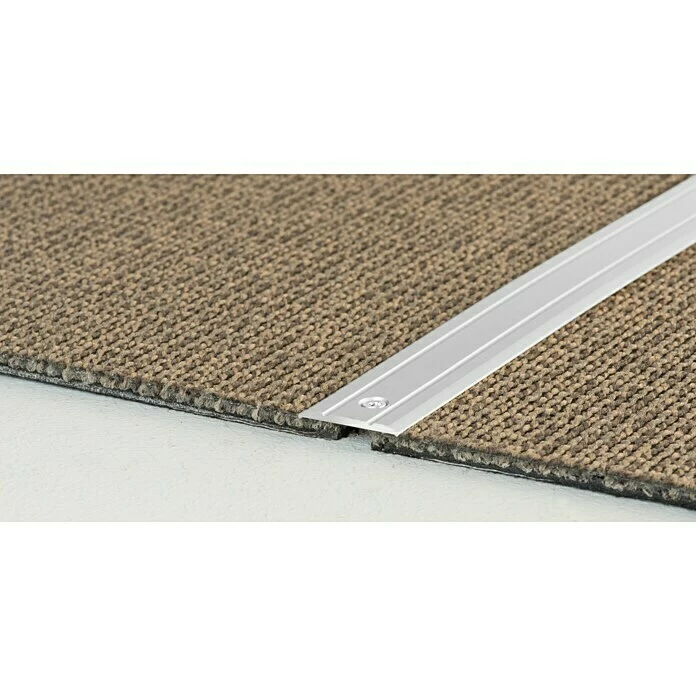 Das LOGOCLIC Übergangsprofil eignet sich perfekt zum Überdecken der Nahtstellen zwischen textilen oder elastischen, gleich hohen Bodenbelägen. Seinen Anwendungsbereich findet das Aluminiumprofil beispielsweise an Türübergängen. Die mittig versenkt gebohrten Schraublöcher ermöglichen eine unkomplizierte Befestigung.