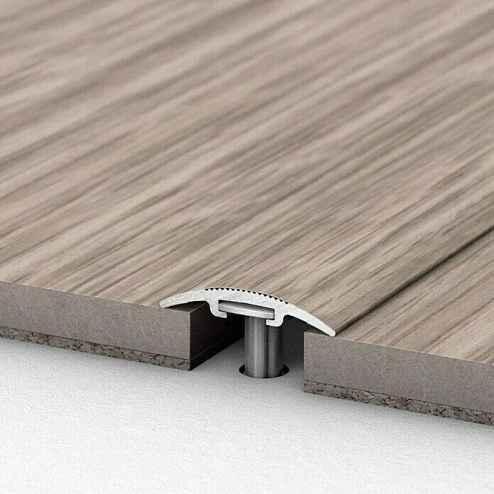 Das LOGOCLIC Übergangsprofil wird mit Nylon-Lamellendübeln verdeckt befestigt. Ins Bohrloch eingetrieben, krallen sich die Lamellen an der Bohrlochwand fest und sorgen für dauerhaften Halt. Zugleich bewirkt die Elastizität des Dübels, dass sich das Profil in Höhe und Neigung dem Bodenbelag und Niveauunterschieden anpassen kann. Im Gegensatz zu Profilen mit vorgegebenen Bohrlöchern können die Bohrlöcher dort gesetzt werden, wo die Haltekräfte benötigt werden, z.B. in Laufstraßen. Da das Profil ohne Basisprofil verarbeitet wird, ist es die ideale Lösung, um Dehnungsfugen im Bodenbelag nachträglich zu schließen.