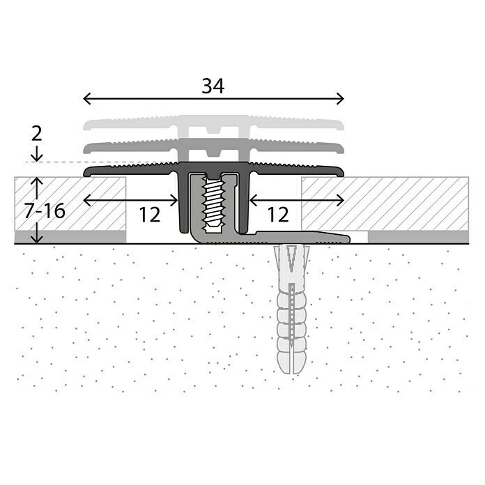 Das LOGOCLIC Übergangsprofil ist für die Verarbeitung von Laminat und Parkett mit Belagstärken von 7 – 16 mm konstruiert. Das bewährte Schraubprofilsystem ist schnell und einfach zu verarbeiten. Zunächst wird das Basisprofil auf dem Untergrund verschraubt und der Boden verlegt. Danach wird das Oberprofil aufgelegt. Die beiden Stege greifen über den Schraubkanal des Basisprofils, mit den beigefügten Schrauben wird es im Schraubkanal befestigt.