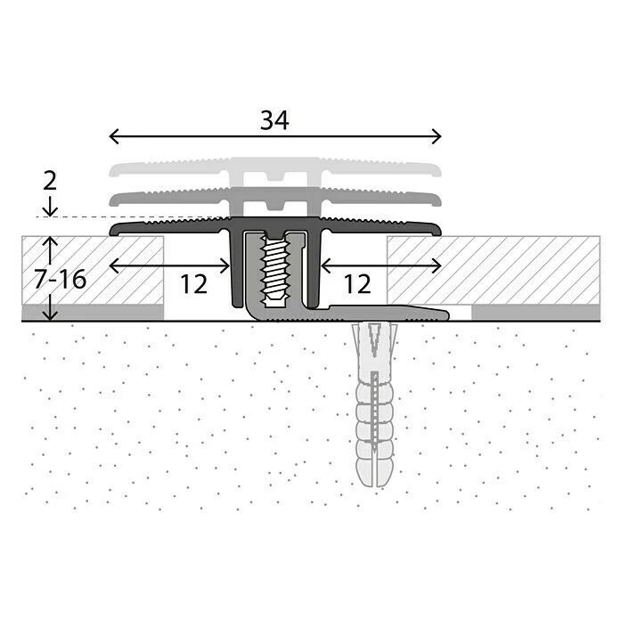 Das LOGOCLIC Übergangsprofil ist für die Verarbeitung von Laminat und Parkett mit Belagstärken von 7 – 16 mm konstruiert. Das bewährte Schraubprofilsystem ist schnell und einfach zu verarbeiten. Zunächst wird das Basisprofil auf dem Untergrund verschraubt und der Boden verlegt. Danach wird das Oberprofil aufgelegt. Die beiden Stege greifen über den Schraubkanal des Basisprofils, mit den beigefügten Schrauben wird es im Schraubkanal befestigt.