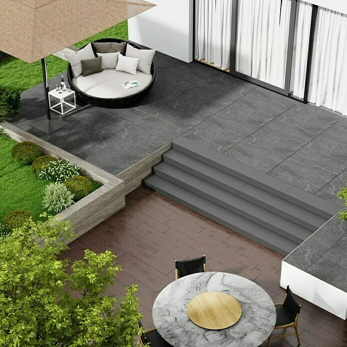 Die glasierte Feinsteinzeugfliese ist ein vielseitiger Bodenbelag für Terrasse und Balkon und zeichnet sich durch ihre umweltbewusste, hochwertige, italienische Produktion aus. Die Feinsteinzeugfliese eignet sich hervorragend zur Verlegung auf Kies, Rasen, Sand, Stelzlager oder im Klebebett. Das spezielle Inkjet-Verfahren verleiht eine natürliche Holzoptik und vermittelt ein sanftes Gefühl von Wärme und Behaglichkeit. Das sehr hoch belastbare Feinsteinzeug ist gegen aggressive Einwirkung wie z.B. Salze, Schimmel und Chemikalien beständig und erfüllt aufgrund der Rutschsicherheitsgruppe R 11 alle Anforderungen eines hochwertigen Bodenbelags. Des Weiteren ermöglichen die rektifizierten Kanten eine besonders maßgenaue Verlegung mit schmalen Fugen. Eine zusätzliche Oberflächenbehandlung ist nicht erforderlich. Die Oberfläche lässt sich sehr einfach, auch mit einem Hochdruckreiniger, reinigen.