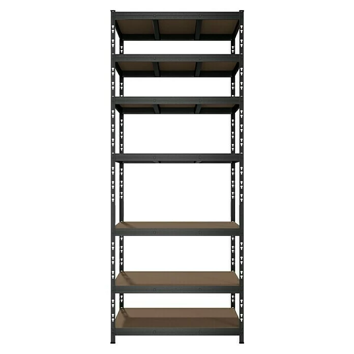 Das Schwerlastregal ist mit einer Traglast von 200 kg pro Boden das ideale Regal für Keller, Garage und Werkstatt. Ausgestattet mit insgesamt 7 Böden bietet es als Lagerregal viel Stauraum zu einem hervorragenden Preis-Leistungs-Verhältnis. Die hochwertige Qualität und eine hohe Stabilität sorgen für eine lange Lebensdauer und Sicherheit. Neben der üblichen Verwendung als Regal, können Sie das Schwerlastregal auch als Werktisch einsetzen. Dank des praktischen Stecksystems lässt es sich schnell und einfach ohne Werkzeug montieren. Somit bietet das Schwerlastregal professionellen Stauraum auf hohem Niveau.