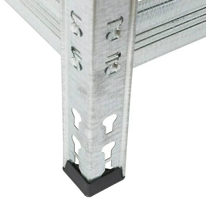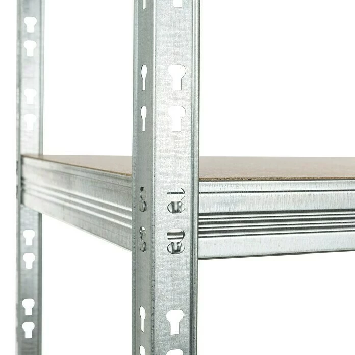 Das Metall-Schwerlastregal bietet Stauraum auf fünf Böden mit einer jeweiligen Traglast von 300 kg. Der Aufbau ist dank des Stecksystems einfach und problemlos. Durch die verzinkte Oberfläche ist das Regal vor Rost geschützt. Das Befestigen an einer Wandfläche ist optional möglich und sorgt für zusätzliche Stabilität.