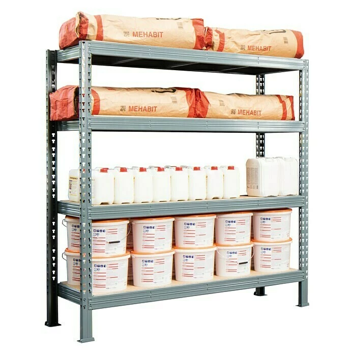 Das Schwerlastregal Super Heavy ist mit einer Traglast von 1.000 kg pro Boden das ideale Regal für zur Lagerung extrem schwerer Lasten in Werkstatt oder Lagerhalle. Ausgestattet mit insgesamt 4 extrabreiten und extratiefen Böden bietet dieses Schwerlastregal sehr viel Stauraum und lässt in Kombination mit der hohen Traglast der Böden keine Wünsche offen. Die hochwertige Verarbeitung, Standsicherheit und Stabilität sorgen für eine lange Lebensdauer und die nötige Sicherheit. Gleichzeitig ist es dank des praktischen Stecksystems schnell und einfach montiert. Somit bietet das Schwerlastregal Super Heavy professionellen Stauraum auf hohem Niveau.