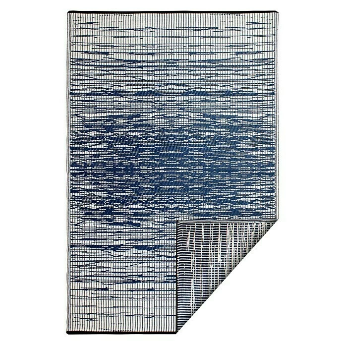 Der Outdoorteppich Brooklyn in kühlem Blauweiß. Die Herstellung erfolgt nach den Fair-Trade Prinzipien ohne Kinderarbeit. Dies wurde durch die Zusammenarbeit mit GoodWeave, einer gemeinnützigen Organisation, die die Kinderarbeit in der Teppichindustrie bekämpft, zertifiziert. Der Teppich ist aus 100 % recycelten Strohhalmen/Premium Plastik und wurde besonders straff und mit hoher Präzision gewebt. Da die Teppiche aus robusten Plastik hergestellt werden, hat auch Feuchtigkeit und somit Schimmelbildung keine Chance und es ist eine lange Haltbarkeit gewährleistet. Auch ist der Multifunktionsteppich UV-resistent und lässt sich optimal auf Rasen oder Bodenbelägen verwenden. Bei der Verwendung im Innenbereich empfiehlt sich eine rutschfeste Unterlage unter dem Teppich zu verwenden (nicht im Lieferumfang enthalten). Verschüttete Flüssigkeiten oder lose Verschmutzungen können einfach weggewischt oder ausgeschüttelt werden. Alternativ lässt sich der Outdoorteppich auch mit Wasser abspritzen. Der Outdoor-Teppich fühlt sich trotz seiner hohen Strapazierfähigkeit weich und bequem unter den Füßen an. Zur schnellen Stiländerung lässt sich der Teppich auch wenden, wie auf dem Bild dargestellt. Auf der Rückseite, bzw. Unterseite werden die Negativ-Farben angezeigt. Das heißt, aus dunkelblau wird weiß und die weißen Flächen der Oberseite sind auf der unteren Seite dunkelblau. In der praktischen Jutetasche mit Schulterriemen lässt sich dieser Outdoorteppich optimalerweise auch zum Strand, Picknick oder Camping mitnehmen. Herstellungsbedingt und durch das verwendete Recyclingmaterial sind bei den gefertigten Unikaten leichte Unterschiede in Form, Größe und Farbgebung möglich.