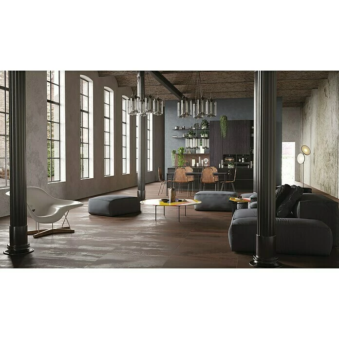 Nur wahre Kenner können diese großformatigen Fliesen der Serie ‚Oxyd‘ von echten Metallplatten unterscheiden, so täuschend sind sie den Originalen nachgeahmt. Versehen mit typischen Spuren der Oxidation versprühen die verschiedenen Farbstellungen – angelehnt an Eisen, Stahl, Kupfer oder Weißmetall – ihren ganz besonderen Vintage-Charme alter Industrieanlagen. Ein Look, der nicht nur im Loft seine Liebhaber findet, sondern auch in kleineren Räumen den gewünschten Hauch Nostalgie für Technikfans entfaltet. Mit ihrer Palette an Farben und Formen eröffnet diese Fliesenserie ein breites Spektrum an Möglichkeiten für Räume jeden Wohnbereichs und jeder Größe. Kommen in weiten Schlaf- oder Wohnzimmern gern großflächige Bodenfliesen zum Einsatz, machen sich Mosaike als Fliesenspiegel in der Küche oder Dekorstreifen im Bad besonders gut. Die rektifizierten Kanten ermöglichen eine besonders maßgenaue Verlegung mit schmalen Fugen. Die Fliese kann als Boden- und Wandbelag eingesetzt werden. Dank der hohen Rutschsicherheitsgruppe ist die Feinsteinzeugfliese auch ideal für den Außenbereich geeignet.