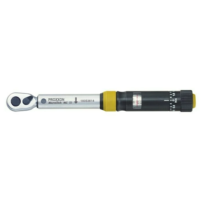 Der Proxxon Drehmomentschlüssel MicroClick MC 15 (1/4″) für 3 – 15 Nm ist ideal für Reparaturen und zur Montage hochwertiger Komponenten. Er besitzt einen 1/4″-Vierkant-Antrieb (6,3 mm) und einen Umschalthebel für Rechts- und Linkslauf. Mit dabei ist ein zusätzlicher Adapter zum Einsatz von Standard-Schrauberbits (Sechskant 1/4″). Die Genauigkeit beträgt +/- 3%. Der Stahlschaft überzeugt durch seine Stabilität mit optimalem Rostschutz. So ist er 2x vernickelt und anschließend mattverchromt. Der Drehmomentschlüssel ist Stück für Stück kalibriert und endgeprüft und mit dauerhaft gelaserter Seriennummer zur Identifikation versehen. Die deutlich lesbare Analoganzeige mit zusätzlicher Mikro-Skala dient der optimalen Feinjustierung. Das Vorwählen des Drehmomentes erfolgt durch Drehen des gerändelten Ringes am Griffende. Der gewählte Wert wird durch Einschub fixiert. Ein praktischer Kunststoffkoffer zum Aufbewahren gehört zum Lieferumfang.