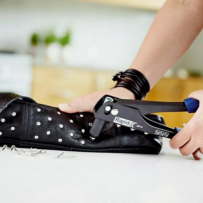 Das Blindnietzangen Set RP10 von Rapid enthält zusätzlich 100 Nieten für den sofortigen Start und eignet sich für eine schnelles, problemloses Arbeiten. Die Nietzange ist das richtige Werkzeug zur Verarbeitung von Nieten aus Aluminium mit einem Durchmesser von 3,2mm, 4,0 mm und 4,8 mm. Der Griffhebel mit Softgrip, sowie das leichte Aluminiummaterial sorgen für hohen Bedienkomfort, besonders über einen längeren Zeitraum. Der Wechsel der Mundstücke erfolgt ganz bequem mit Hilfe des integrierten Montageschlüssels. Mit dem Blindnietzange Set RP10 können Sie sofort mit der Arbeit beginnen.