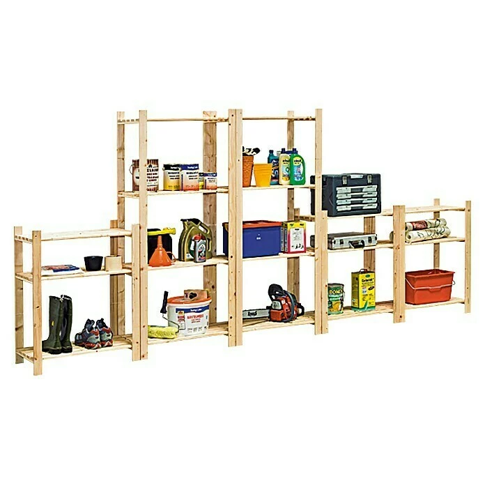 Das Holzregal simple von Regalux bietet viel Stauraum auf vier Böden und überzeugt durch ein hervorragendes Preis-Leistungs-Verhältnis. Es ist aus Nadelholz gefertigt und lässt sich schnell und einfach aufbauen. Mit diesem Holzregal von Regalux sind Ihre aufzubewahrenden Gegenstände stabil und sicher verstaut.