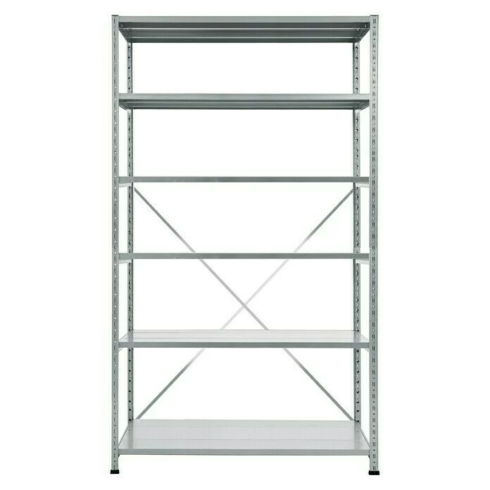 Das Lagerregal Grundregal von Scholz ist ein Steckregal zum Lagern von unterschiedlichem Lagergut für Keller, Garagen und Werkstatt. Es ist Teil eines umfangreichen Regalsystems welches ideal für all jene geeignet ist, die ein flexibles Regalsystem benötigen das sich vielseitig und leicht in die vorhandenen Räumlichkeiten einpassen und erweitern lässt. Der Aufbau ist dank des Stecksystems einfach und problemlos durchzuführen. Das Regal verfügt über 6 Fachböden mit einer jeweiligen Traglast von 240 kg sowie über abgerundete Kanten und Ecken was der Gefahr von Verletzungen vorbeugt. Durch die verzinkte Oberfläche ist es vor Rost und Witterungseinflüssen geschützt. Das System Komplettregal lässt sich bei Bedarf durch Anbaufelder beliebig erweitern und sorgt somit für größtmögliche Flexibilität. Die umfangreiche Auswahl dieses Systems an Regalen, Grundelementen, Anbauelementen und Zubehör entnehmen Sie bitte der angehängten Produktübersicht.