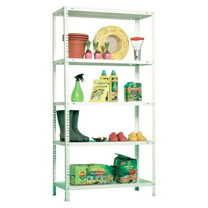 Das Metallregal von Simon Rack ist mit einer Traglast von 100 kg pro Boden das ideale Regal für den Haushalt, die Garage oder den Keller. Ausgestattet mit insgesamt 5 Fachböden bietet es viel Stauraum und die starre Konstruktion sorgt für eine hohe Stabilität und Standsicherheit. Somit ist eine separate Verankerung in der Wand nicht nötig. Wahlweise lässt sich das Regal auch als Werktisch montieren. Die Montage des Metallregals erfolgt mit Hilfe von im Lieferumfang enthaltenen Schrauben. Somit bietet das Metallregal professionellen Stauraum auf hohem Niveau.