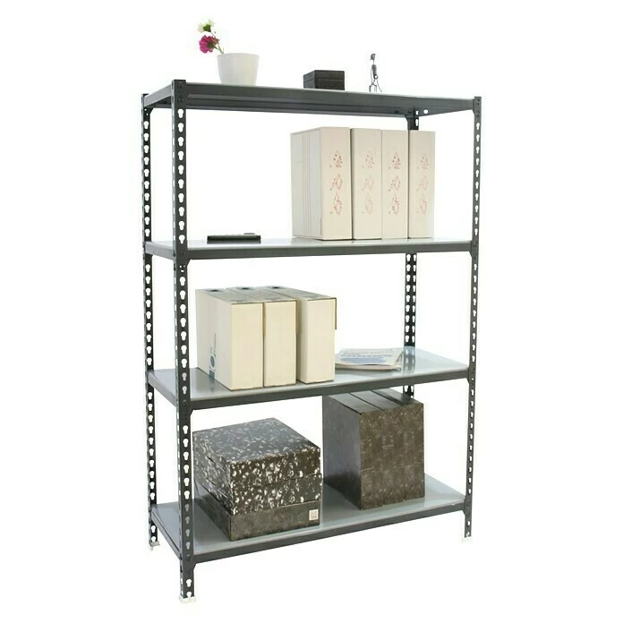 Das Steckregal Simonclick von Simon Rack ist ein flexibles Schwerlastregal das in unterschiedlichen Größen, mit einer unterschiedlichen Anzahl an Böden und in verschiedenen Farben erhältlich ist. Die mit 180 kg belastbaren Böden werden über Traversen im Regal befestigt und lassen sich schräg oder horizontal montieren. Gleichzeitig können die Böden gedreht werden um beispielsweise Schuhe oder rollbare Gegenstände zu lagern. Dank des praktischen Stecksystems lässt sich das Regal schnell und einfach montieren. Somit bietet es professionellen Stauraum auf hohem Niveau.