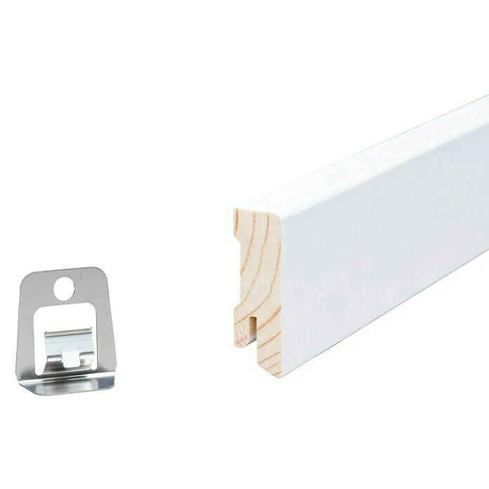 Diese Sockelleiste aus keilgezinktem, weiß lackiertem Kiefernholz ist Premiumqualität gefertigt. Ihre Wertigkeit sieht man ihr bereits auf den ersten Blick an. Durch ihr massives Holz ist sie zudem besonders robust und langlebig. Das kubische Profil erfüllt alle Ansprüche des modernen Wohndesigns und fügt sich stilvoll in jede Raumgestaltung ein. Durch die Clip-Nut der Sockelleiste ist sie obendrein im Handumdrehen montiert.
