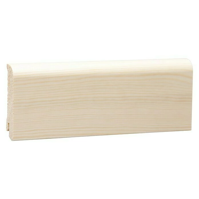 Die Sockelleiste aus massivem, rohem Kiefernholz mit rundem Profil ist ein echter Klassiker, der sich hoher Beliebtheit erfreut. Ihr natürlicher Charme verleiht jedem Raum Behaglichkeit. Auf Wunsch kann die Leiste aus Vollholz zudem mit Lack und Lasur behandelt werden, um ihr Erscheinungsbild auf das jeweilige Wohnkonzept abzustimmen.
