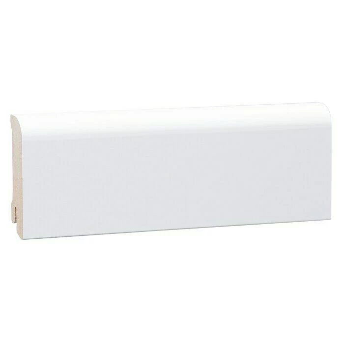 Diese weiße Sockelleiste ist aus äußerst robustem MDF gefertigt. Das klassische abgerundete Profil fügt sich stilvoll in jede Raumgestaltung ein. Durch die Clip-Nut der Sockelleiste ist sie obendrein im Handumdrehen montiert.