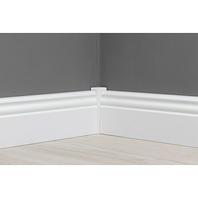 Diese weiße Sockelleiste mit altdeutschem Profil ist aus äußerst robustem MDF gefertigt. Für Qualitätsbewusste ist sie damit eine sehr gute Alternative zu Vollholz. Mit ihrer klassischen Form veredelt sie den Übergang zwischen Boden und Wand und verleiht diesem besonders in Altbauten einen stilechten Charakter. Darüber hinaus passt sie zu einer Vielzahl von Einrichtungsstilen. Durch ihre Clip-Nut ist sie besonders montagefreundlich.