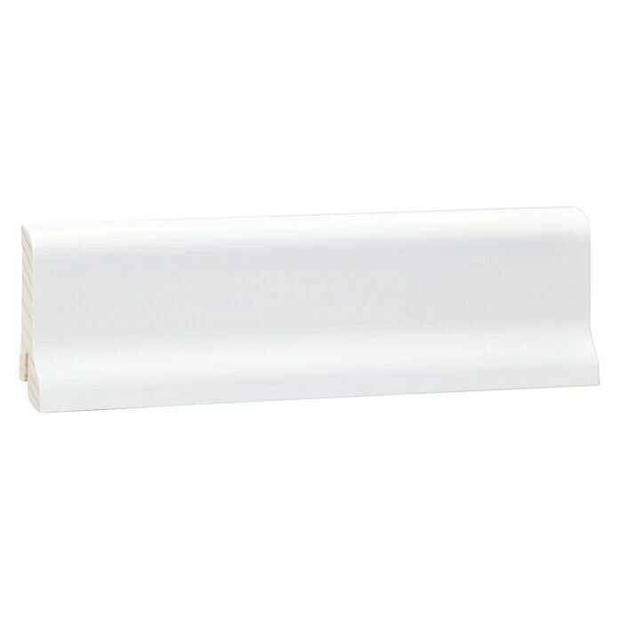 Diese Sockelleiste ist ein echtes Premiummodell mit geschwungenem Profil. Weiße Fußleisten erfreuen sich großer Beliebtheit und passen insbesondere zu modernen Einrichtungsstilen. Die Leiste ist mit Starkfolie ummantelt und verfügt über einen Kern aus massivem Fichtenholz. So ist sie äußerst robust. Zur Erleichterung der Montage dient eine rückseitige Clip-Nut.