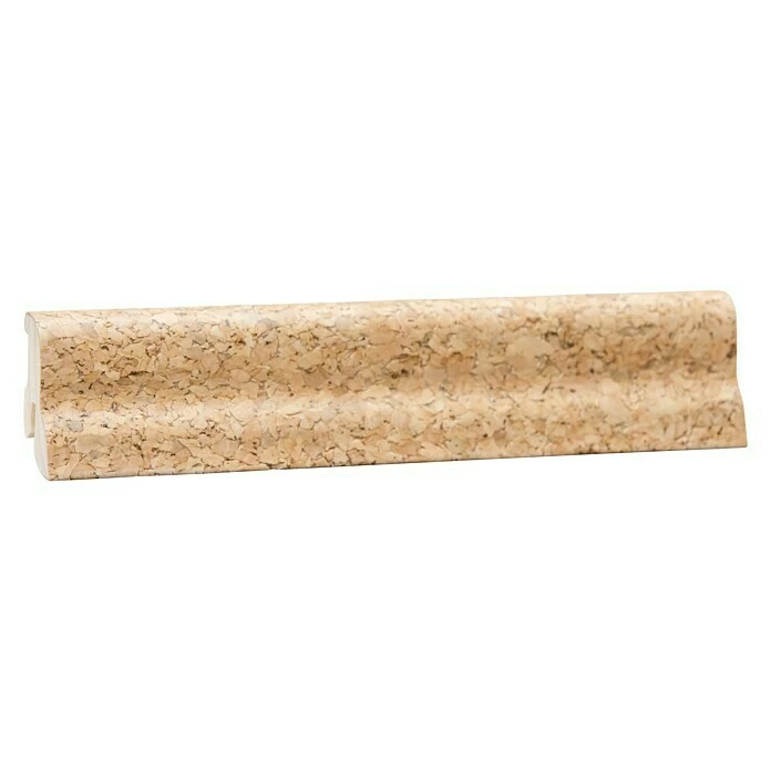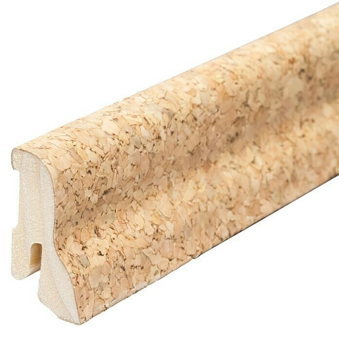 Die Sockelleiste mit einem robusten, groben Kork-Echtholzfurnier verfügt über einen massiven Fichtenholzkern und weist dadurch eine herausragende Stabilität auf. In Natur lackiert und mit geschwungenem Profil erzeugt sie einen harmonischen und ansprechenden Abschluss zwischen Wand und Boden. Die Clip-Nut auf ihrer Rückseite ermöglicht eine Montage ohne Schrauben oder Kleben.