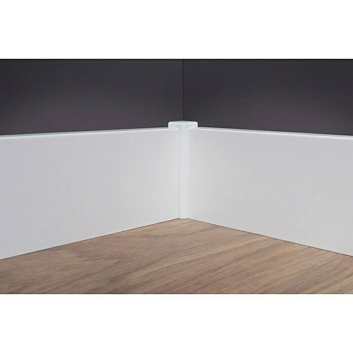 Die Sockelleiste aus einem hochwertigen Fichtenholzkern ist von einer Starkfolie in klarem, reinem Weiß ummantelt. Das Ergebnis ist eine besonders robuste, langlebige Leiste, die mit einem schlichten, puristischen Look punktet. Dieser wird durch ihr modernes, eckiges Profil noch verstärkt, da dieses zu vielerlei Einrichtungsstilen passt. Einen praktischen Vorteil bietet die Clip-Nut der Sockelleiste. Damit ist eine einfache und verdeckte Montage möglich.