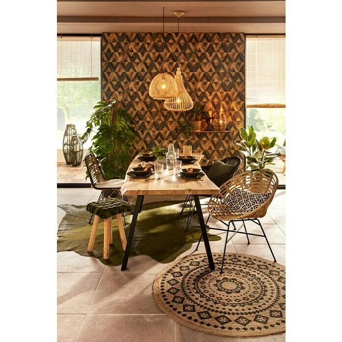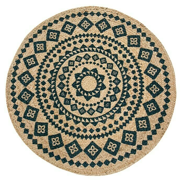 Der handgeflochtene Teppich Mamda ist mit einem schönen Ornamentmuster verziert und überzeugt durch sein natürliches Material. Der zu 100 % aus Jute bestehende Teppich ist besonders strapazierfähig und eignet sich daher hervorragend für vielseitige Einsatzbereiche. Der Durchmesser von 80 cm sorgt dafür, dass der Naturteppich leicht einen geeigneten Platz findet. Auch das Vorhandensein einer Fußbodenheizung stellt bei der Platzwahl keine Einschränkung dar. So ist der Teppich Mamda durch sein natürliches Design ein echter Hingucker in jedem Wohnraum, Esszimmer oder Flur.