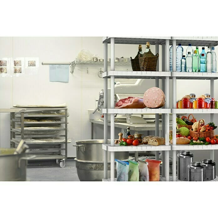 Das Kunststoffregal von Terry eignet sich besonders zur Lagerung und Aufbewahrung von Vorräten in der Küche oder Vorratskammern. Die fünf Regalböden bieten großzügigen Stauraum für die verschiedensten Utensilien. Da das Regal aus Kunststoff gefertigt ist, ist es besonders leicht und kann einfach gereinigt werden.