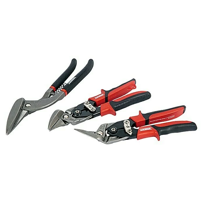 Das Wisent Blechscheren-Set ist perfekt geeignet zum Schneiden und Trennen von Blechen. Mit den hebelübersetzten Blechscheren lassen sich gerade Schnitte aber auch enge Schnittradien ausführen. Dank der Übersetzung ist ein ermüdungsarmes, kraftsparendes Arbeiten bei guter Kraftübertragung möglich. Mit der rechtsschneidenden Pelikanschere können lange, gerade Schnitte und Trennschnitte sehr gut durchgeführt werden, da das Werkstück nicht verbogen oder verzogen wird. Dank der mitgelieferten Feder öffnet sich die Schere automatisch nach jedem Schnitt wieder. Geeignet sind die Scheren des Blechscheren-Sets für alle gängigen Stahl- und Ne-Metall-Bleche (außer Edelstahl).