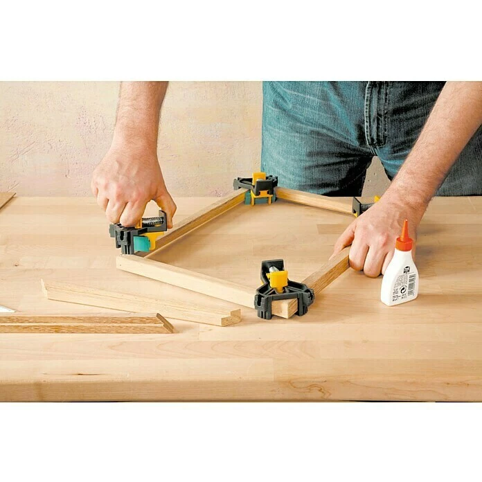 Die Eckenspanner ES 22 von Wolfcraft sorgen für genaue Verbindungen im 90° Winkel von Werkstücken mit einer maximalen Dicke von 22 mm. Durch den Federmechanismus können sie einfach und schnell verwendet werden, die Werkstücke werden mit einem Handgriff verbunden. Auch verschieden dicke Bretter können miteinander verbunden werden, da das Spanndreieck seitlich verschiebbar ist. Vor allem bei kleineren und leichten Bastelvorhaben zeigt der Eckenspanner ES 22 seine Stärke.