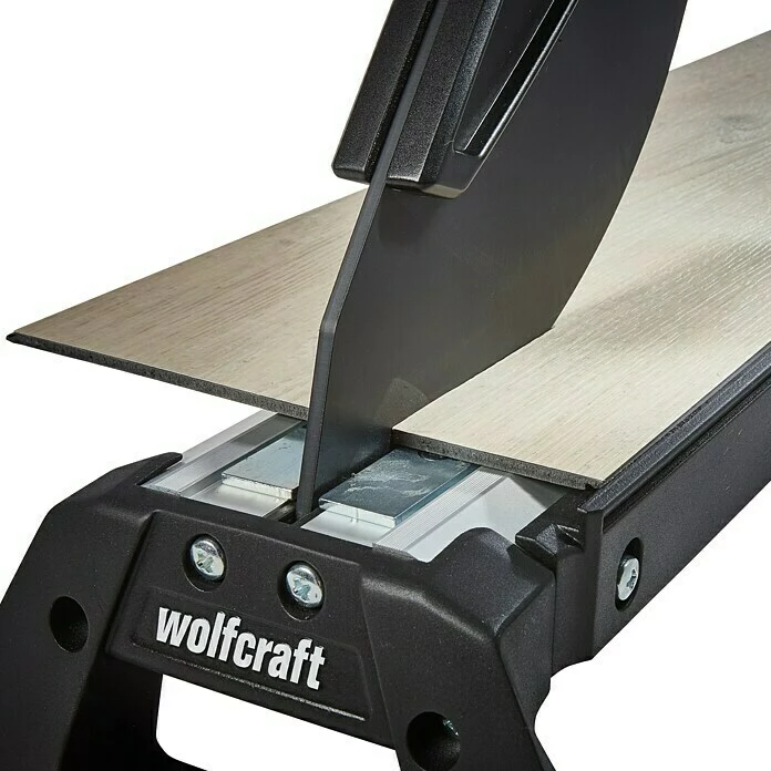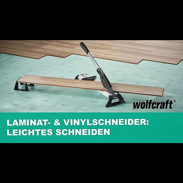 Der Wolfscraft Laminat- und Vinylfliesenschneider VLC 800 eignet sich perfekt zum sicheren und vor allem zeitsparenden Schneiden aller Laminatarten bis 11 mm Stärke und 465 mm Breite und selbstklebenden und Klickvinylpaneelen und Vinylfliesen bis 6 mm Stärke und 465 mm Breite. Dank des verstellbaren Schneidspalts lässt sich auch dünnes Vinyl präzise schneiden. So sind präzise 90° Schnitte mit Anschlag oder Winkelschnitte von 0° bis 180° möglich. Die beschichtete Klinge garantiert ein leichtgängiges Schneiden selbstklebender Produkte, die Niederhalter-Funktion erleichtert das Kürzen zusätzlich. Durch rutschhemmende Fußpuffer ist ein sicherer Stand gewährleistet und ein staub- und geräuscharmes Arbeiten möglich.
